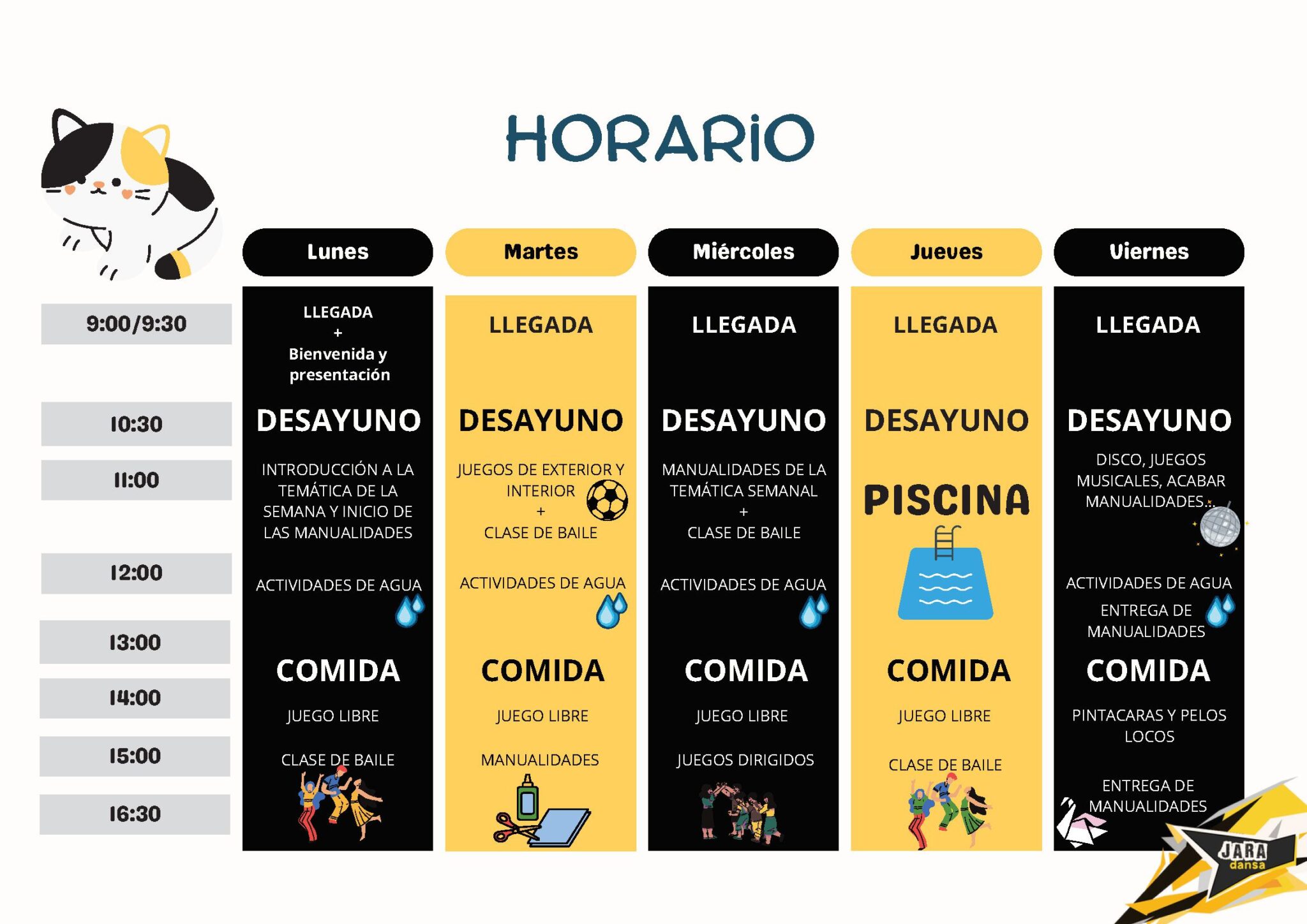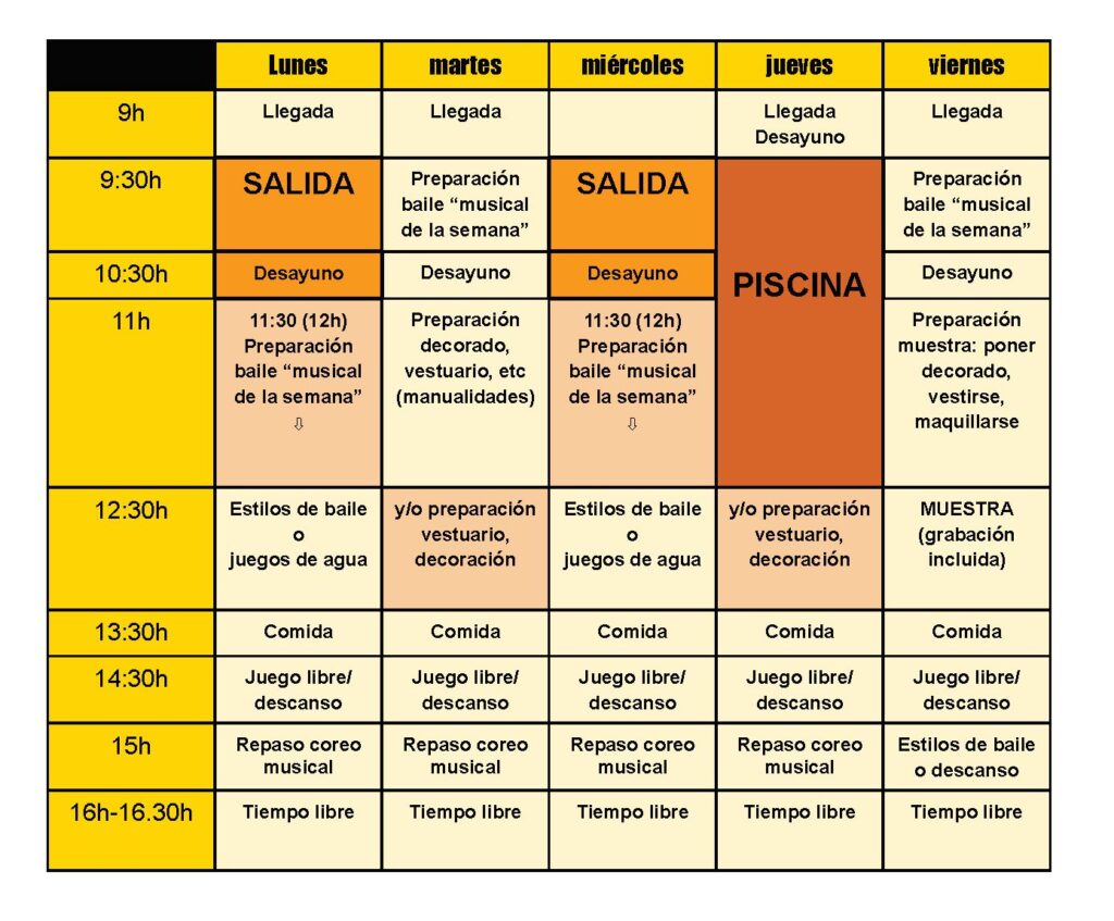Hablar inglés como idioma principal - Manualidades- Actividades de agua - Juegos de exterior e interior - Clase de baile - Juegos dirigidos - Musicales y mucho más